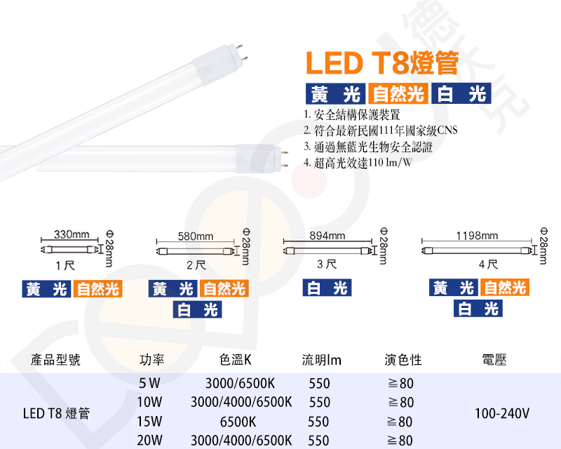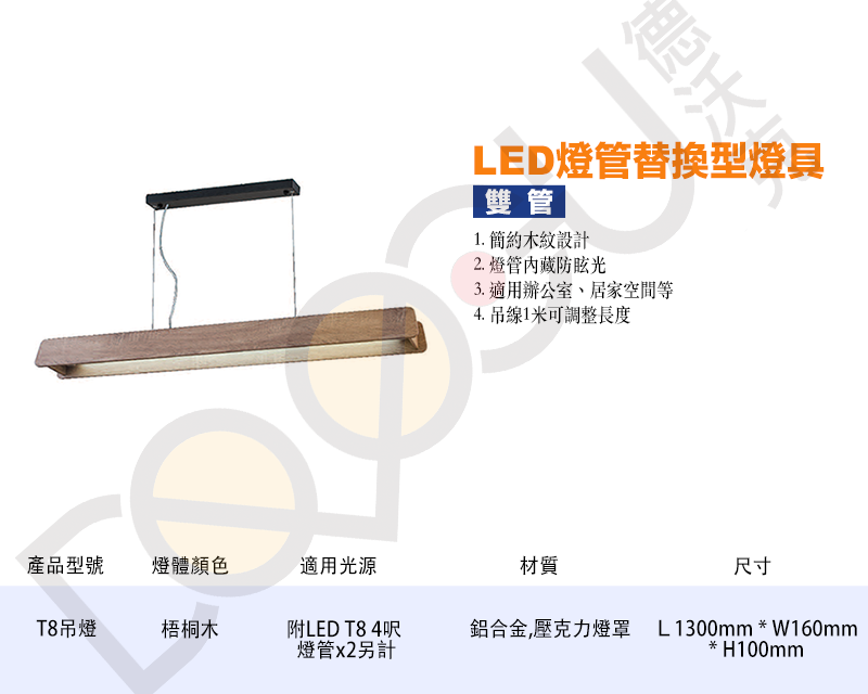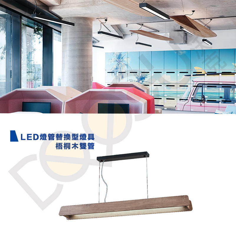 品項: LED T8 4尺 梧桐木吊 燈管替換型長條型吊燈