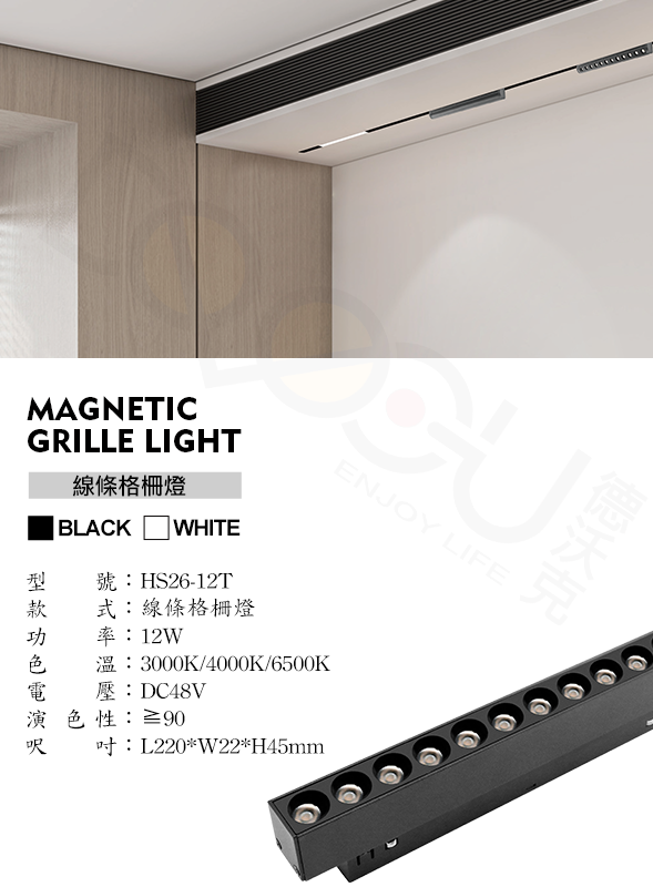 磁吸式 LED 12W 線條格柵燈 磁吸式軌道燈 高演色性軌道燈 HS26-12T