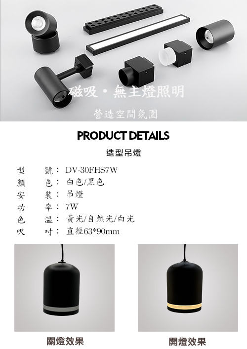超薄磁吸吊燈 透光吊燈 DV-30F-HS7W